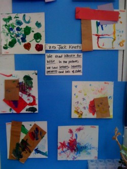 - We read “Whistles for Willie.” In the pictures we saw letters, squares, patterns and lots of colors. Illustrations by Ezra Jack Keats